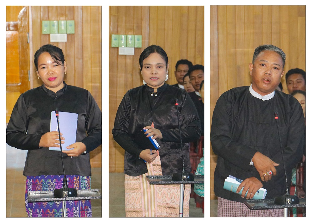 “ရှေ့နေရှေ့ရပ်များအတွက် AML/CFT ဆိုင်ရာအသိပညာပေးသင်တန်း” ကို ဇေယျာသီရိခရိုင်တရားရုံး၌ ယမန်နေ့ နေ့လည် ၂း၀၀ နာရီတွင် ပြုလုပ်ရာ ပြည်ထောင်စုတရားစီရင်ရေးကြီးကြပ်မှုရုံး၊ ညွှန်ကြားရေးမှူးချုပ် ဒေါ်တင်နွယ်စိုး တက်ရောက်၍ အမှာစကားပြောကြားသည်။